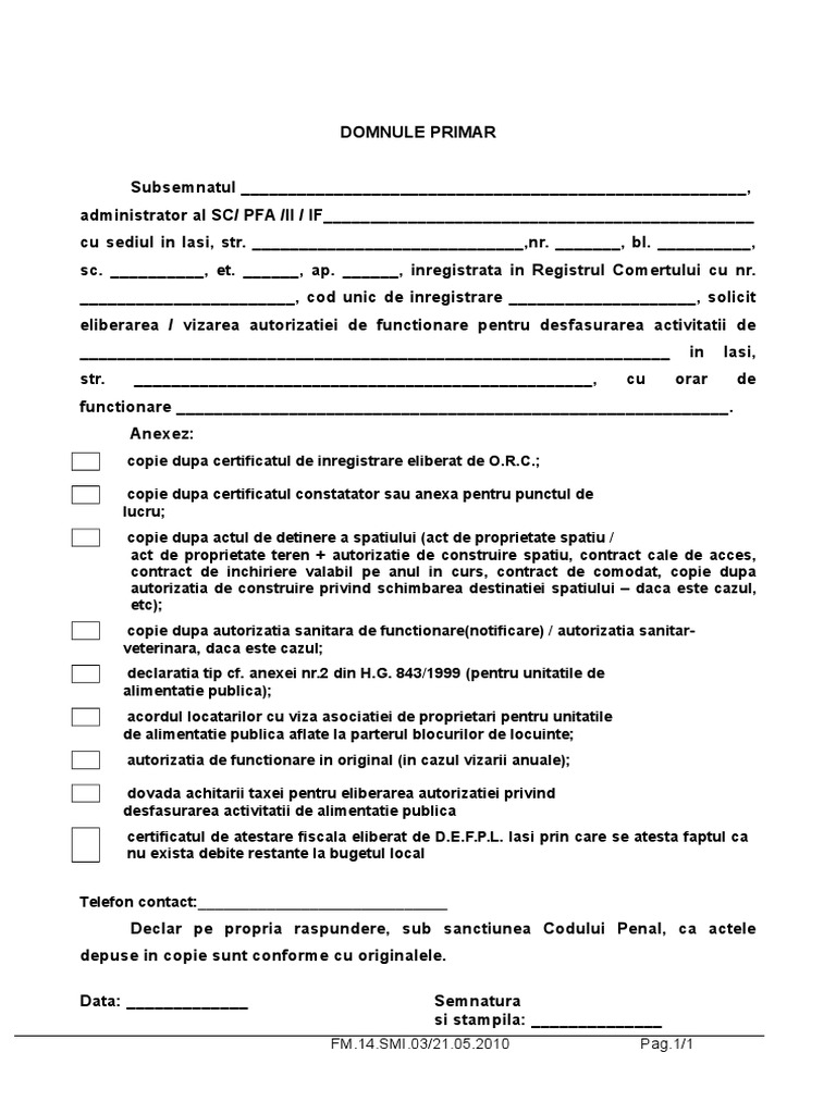 Fm 14 Smi 03 Cerere Tip Autorizatie De Functionare