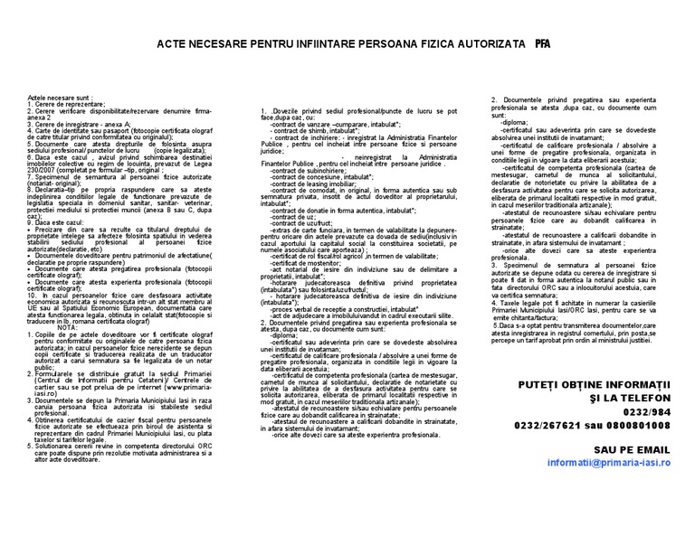 Acte Necesare Pentru Infiintare Persoana Fizica Autorizata Pfa