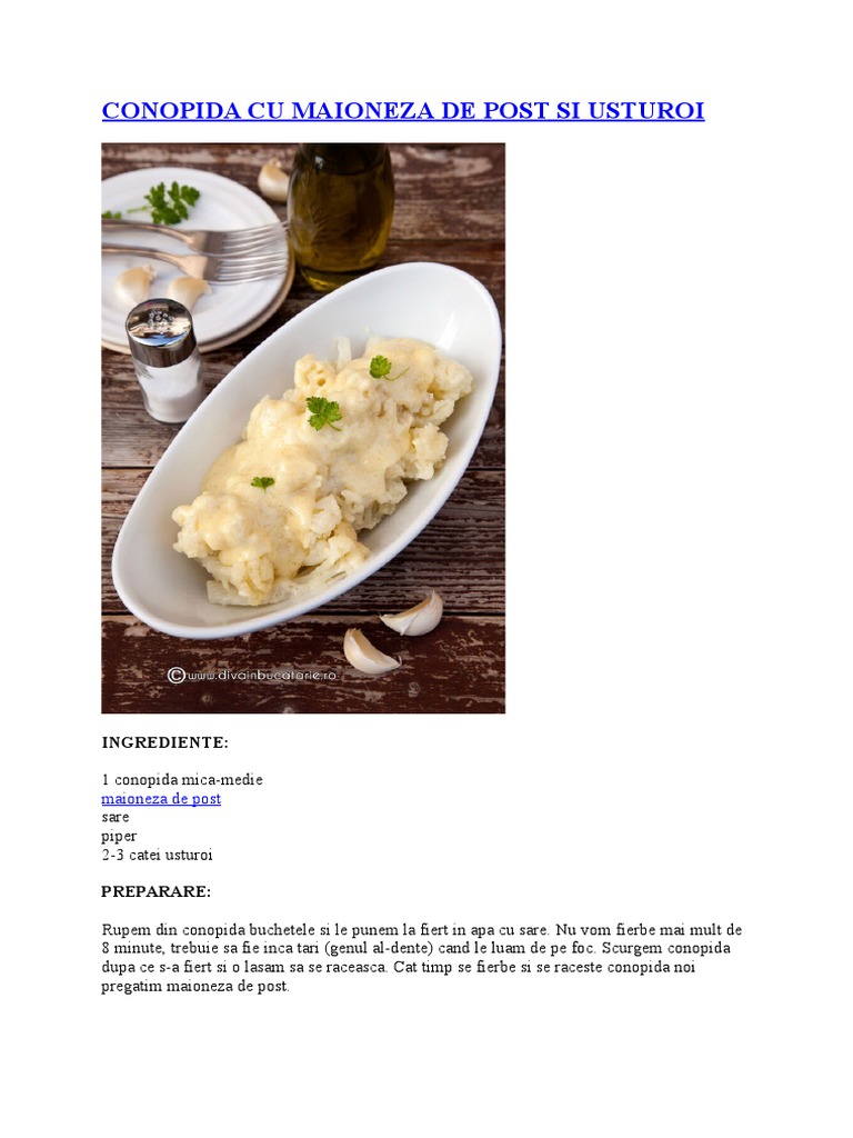 Conopida Cu Maioneza De Post Si Usturoi Ingrediente