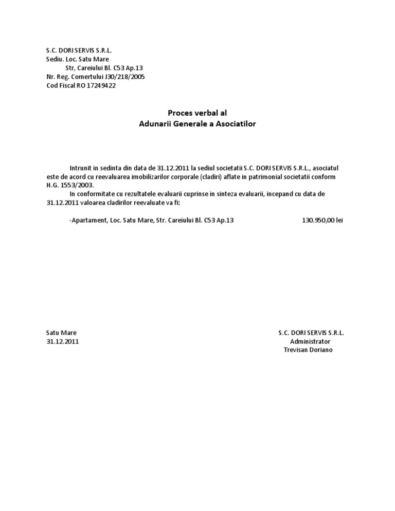 Model Pv Hotărare Aga Aprobare Sfa