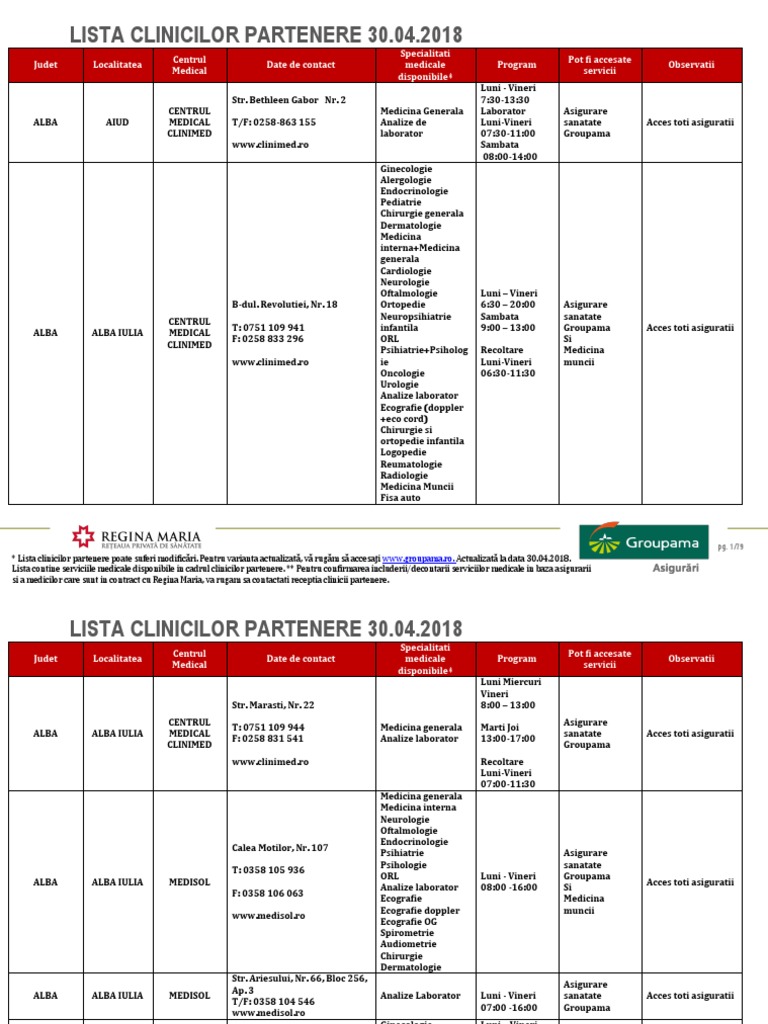 Lista Clinicilor Partenere 30 04 Oftalmologie Orl Endocrinologie Neurologie Analize De Laborator