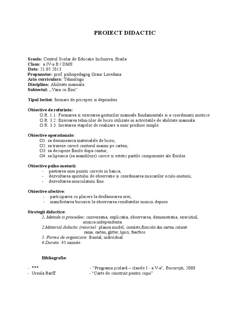 Proiect Proiect Didactic Educatie Fizica Si Activitati Sportive Pentru Copii Cu Deficiente Severe Psihopedagogie 370614